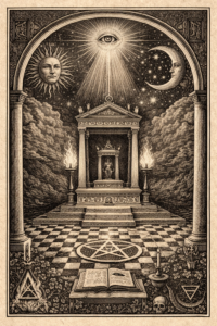 Dans le Rite Ancien et Primitif de Memphis-Misraïm, le Naos n’est pas seulement une pièce du temple : il est le centre symbolique suprême de tout travail initiatique. Il est posté au centre du temple maçonnique, sur le pavé mosaïque qui représente la rencontre des polarités cosmiques et telluriques, lieu d’une sacralité silencieuse et radicale.
